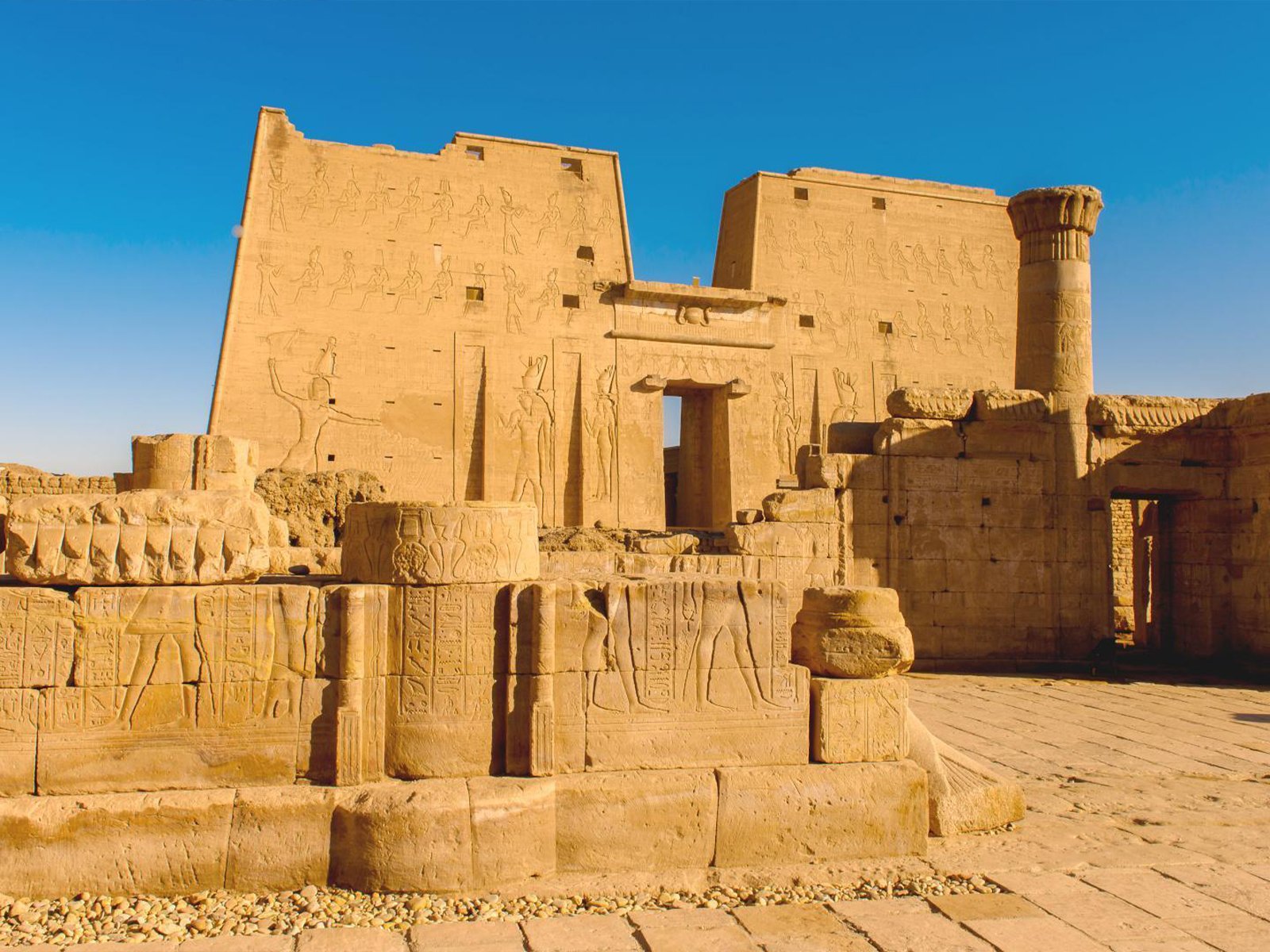 ● Dock and take a carriage ride to visit the temple dedicated to the god Horus, symbolized by a solar disk with falcon wings. This is one of the largest and best-preserved temples of ancient Egypt. Continue your journey on the river, have dinner on board, and dock overnight at