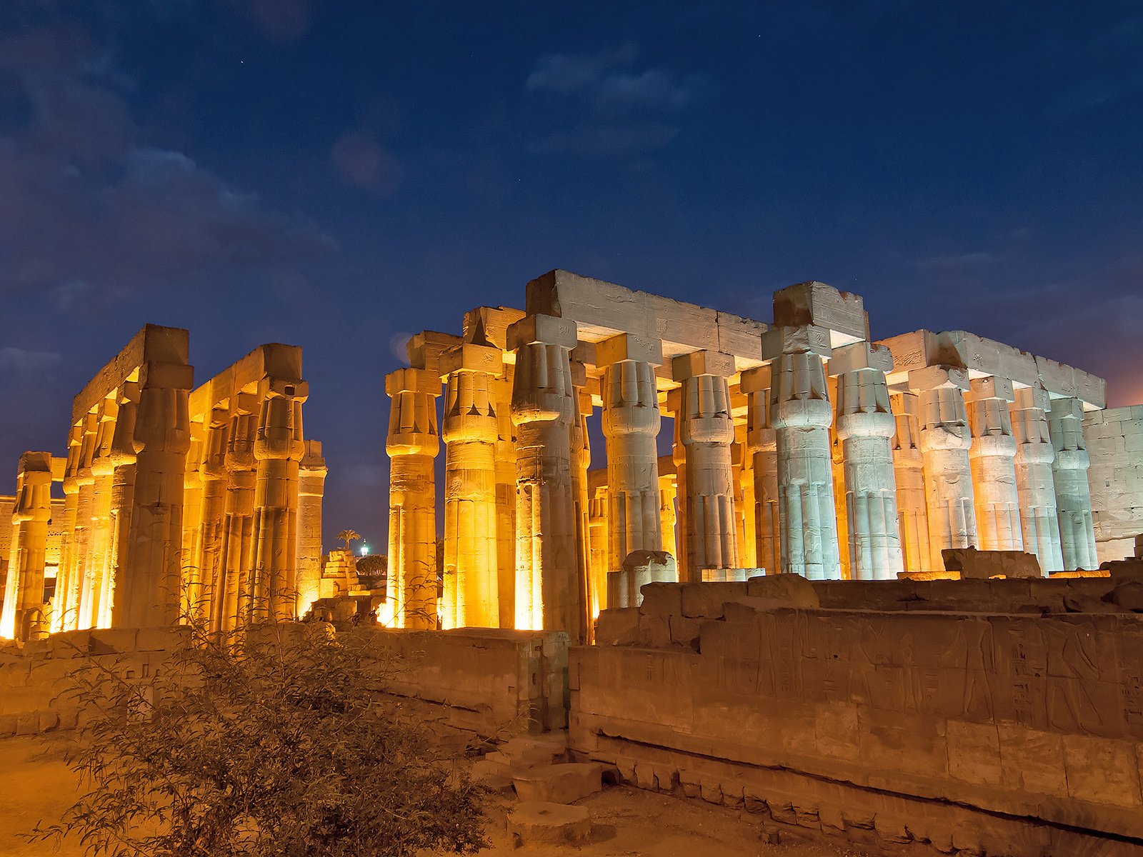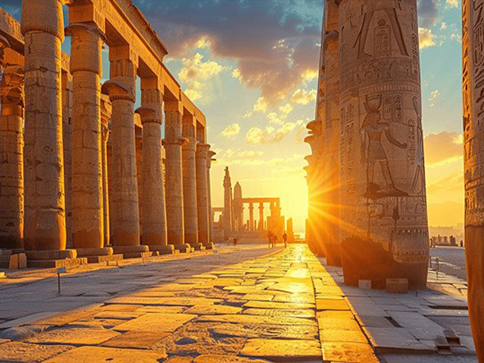 ● Temple of Karnak: A vast complex and one of the largest religious structures ever built, Karnak was dedicated primarily to the Theban triad—Amun, Mut, and Khonsu. Constructed over more than 2,000 years, it served as a major center of worship during the New Kingdom (c. 1550–1070 BC) and remains a stunning testament to ancient Egyptian architecture and spiritual life.